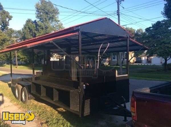 Get your hands on this awesome custom made BBQ Trailer and don't let go of it! This 2017 - 8' x 24' Custom BBQ Concession Trailer has 7' of inside standing height and opens on 4 sides. See more awesome features below.