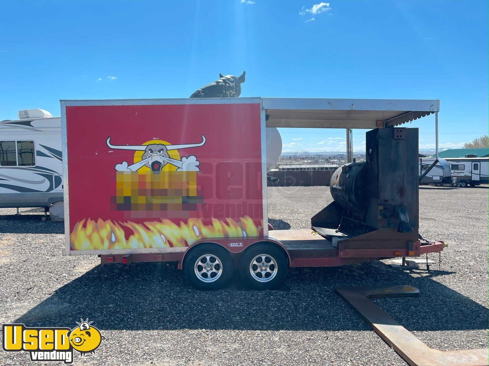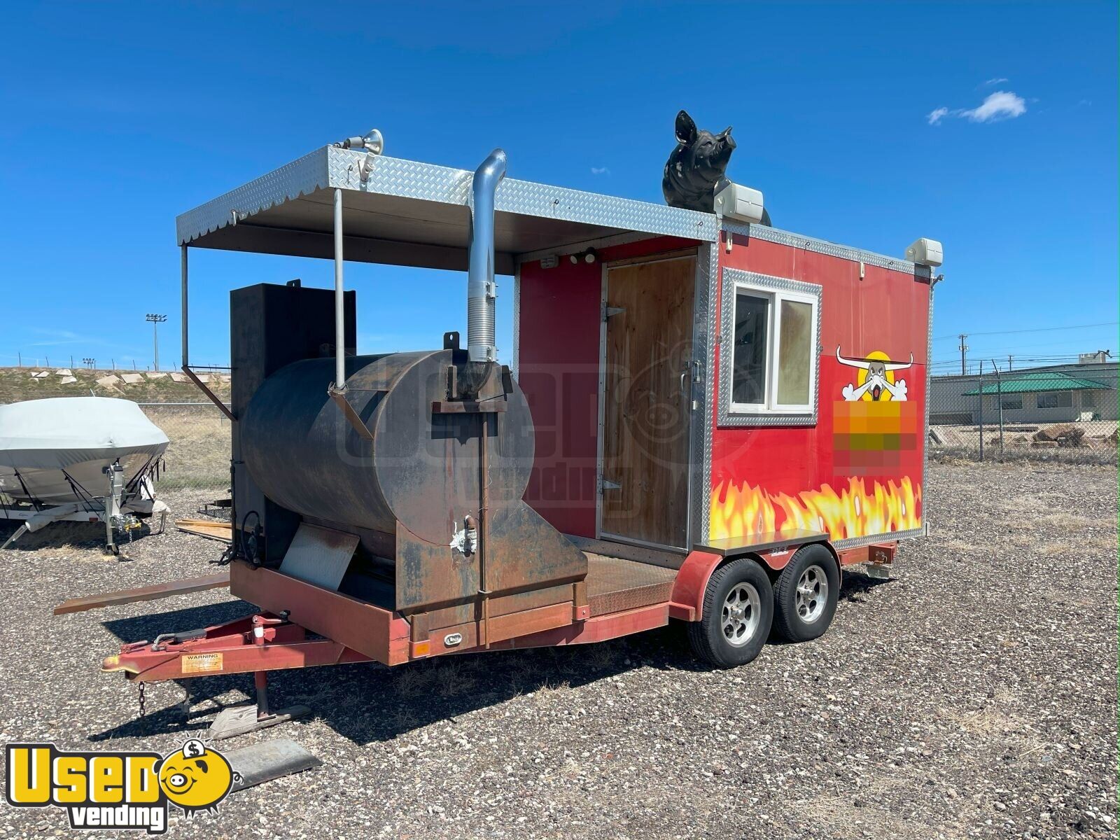 This barbecue smoker trailer is built for efficiency and productivity! With a large cooking space, built-in smoker, and plenty of prep & storage areas, it's ideal for catering, events, or starting your own BBQ business. Make it yours by calling us now!