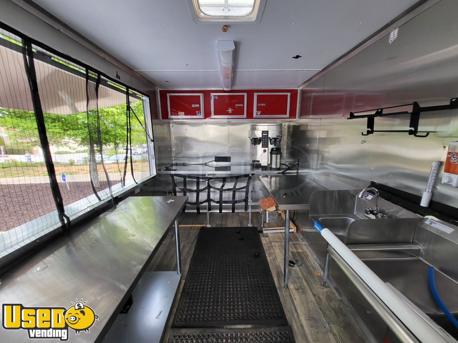 Here's a perfect unit for serving coffee and other beverages on the go. Contact us today to learn more about this modern mobile concession trailer!