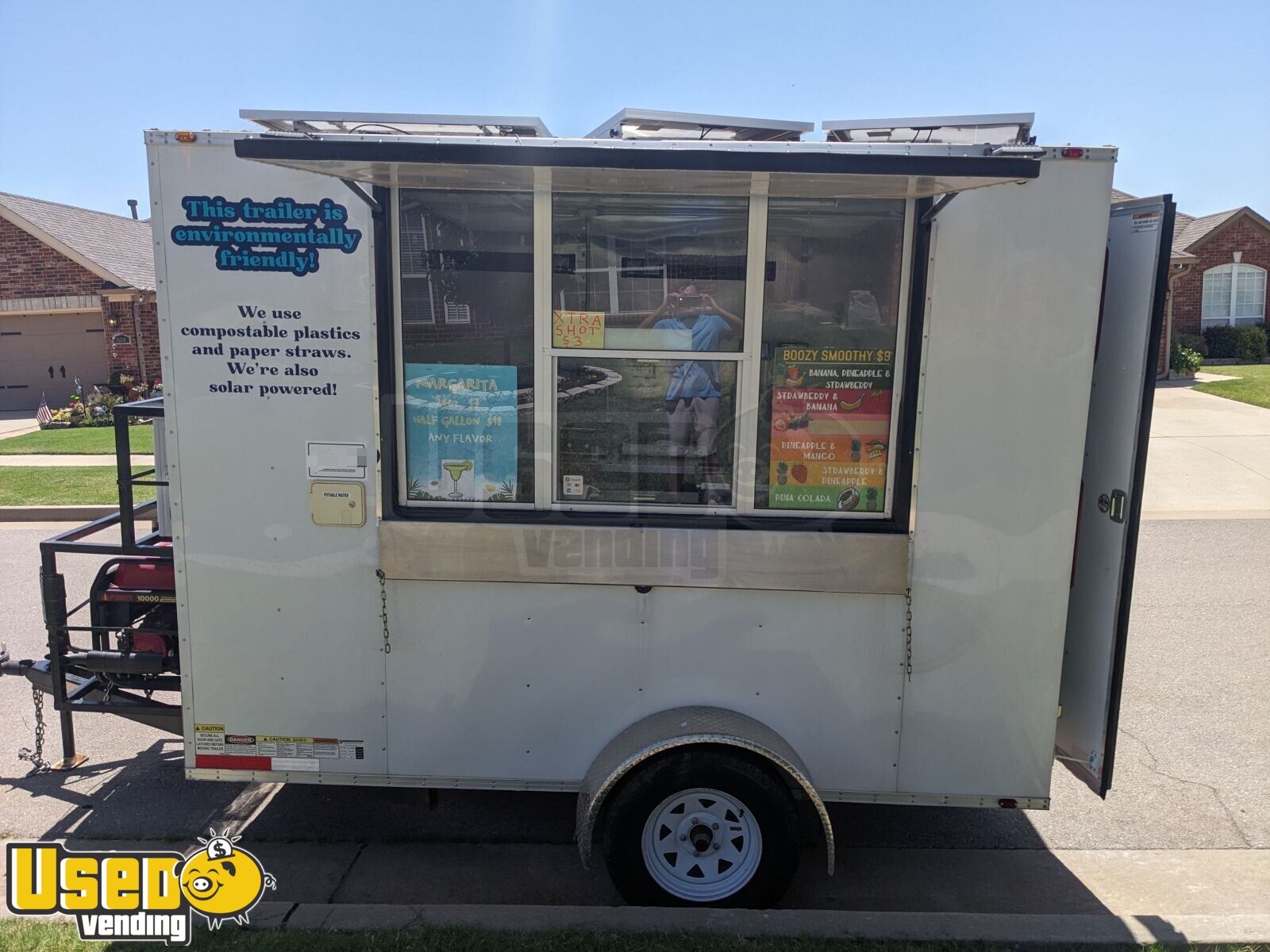 Quench your thirst for success with this beverage concession trailer, powered by solar panels, solar inverters, and a gas generator for electricity to keep your drinks cool and your business eco-friendly on the go. To learn how to make this unit yours, don't hesitate to reach out to us today!