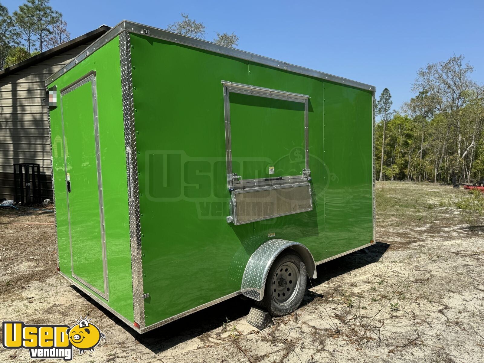This concession trailer is designed for functionality and visual appeal. The spacious, clean interior is ready for your specific setup, offering a professional platform to serve customers at any event or location. Need to know more? Call us now!