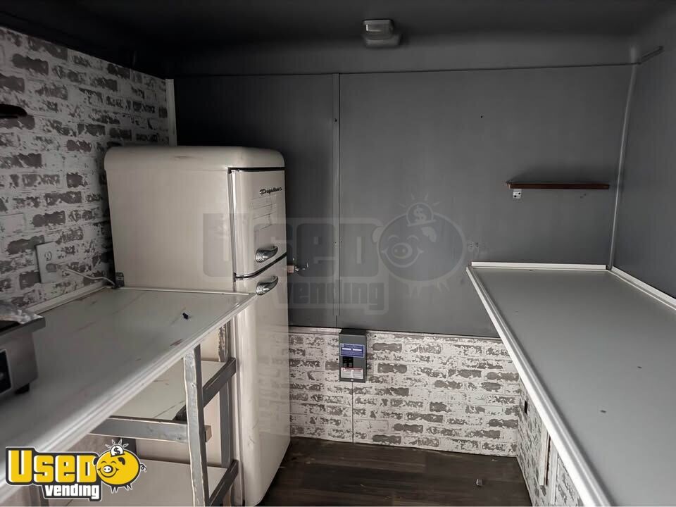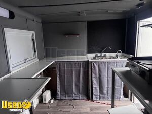 This 2024 kitchen food trailer is ready to launch a new food venture. It features a sleek black exterior, clean grey interior, and a clean title, making it an excellent choice for entrepreneurs eager to start serving right away.