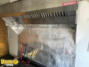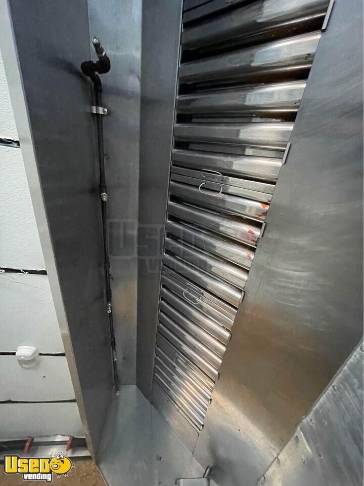This food trailer has all plumbing, electrical, water heater and range hood with sprinkler system.