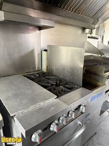 - Large commercial grill, fryer, and side burners