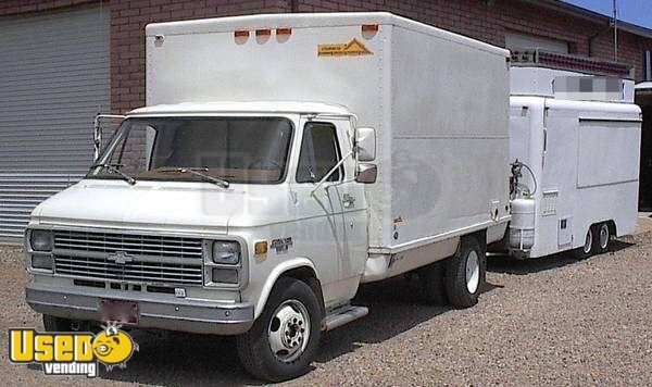 This trailer comes with a 1984 Chevrolet box truck to tow and serve as a support/storage vehicle for the trailer. With this tandem you can stay on the road for extended periods of time. See details for list of equipment.