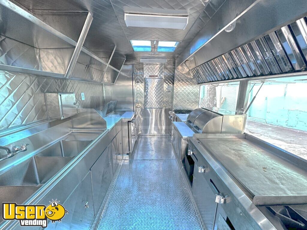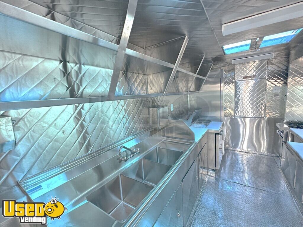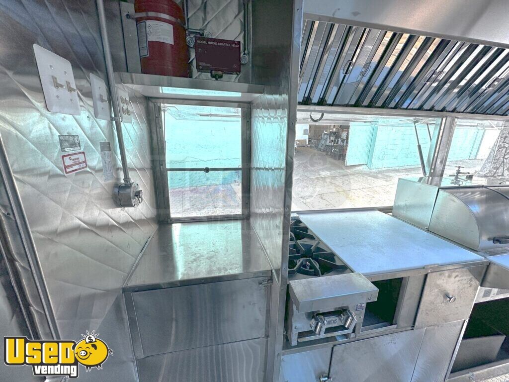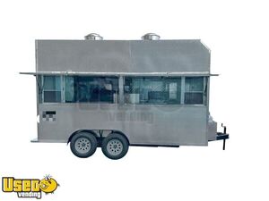 This 14' custom kitchen trailer is Health Department approved and comes ready for operation. Maintained in good condition, it features an aluminum exterior and blueprints for easy setup, making it ideal for immediate business use. Don't miss out, call us now!