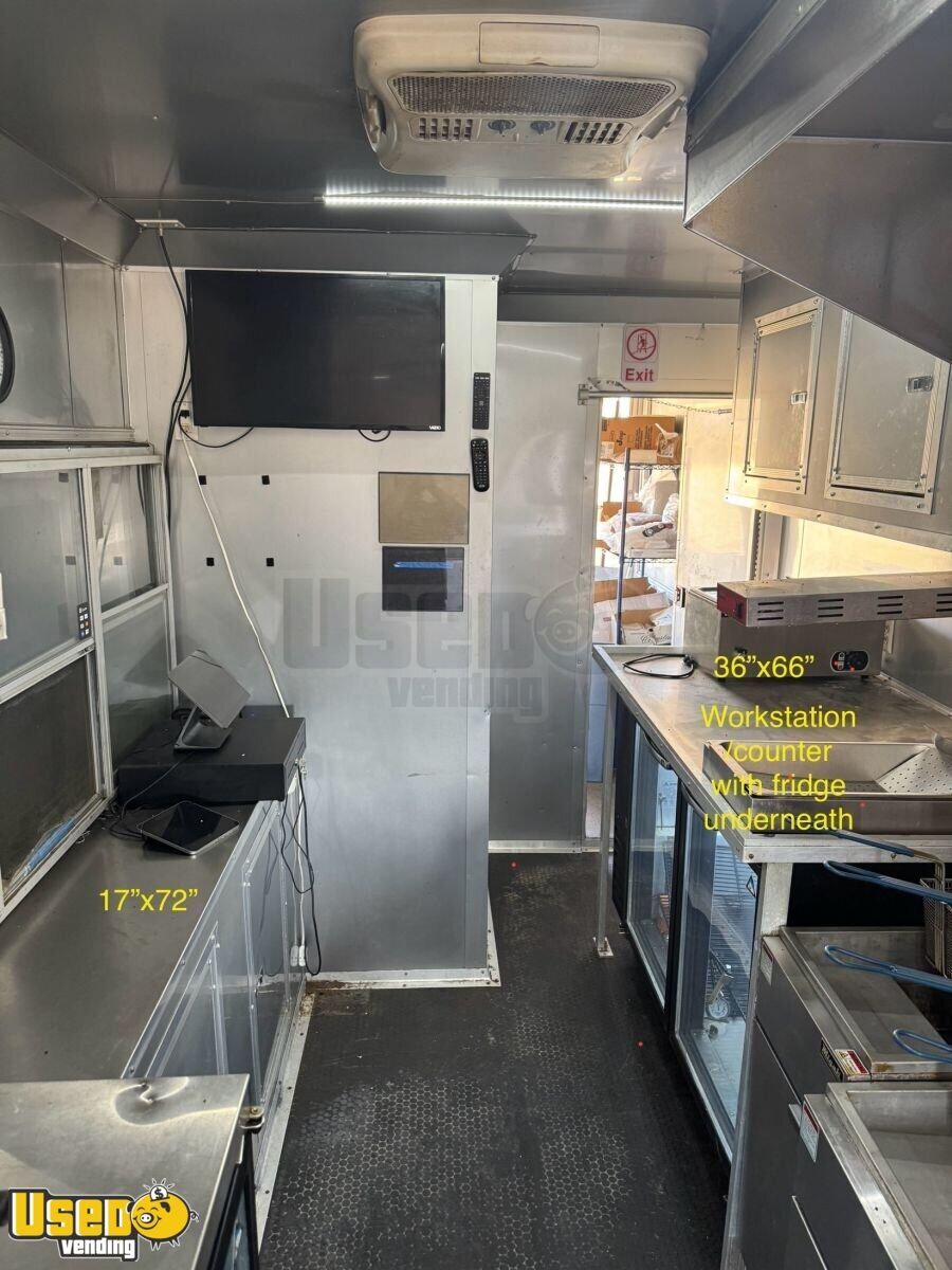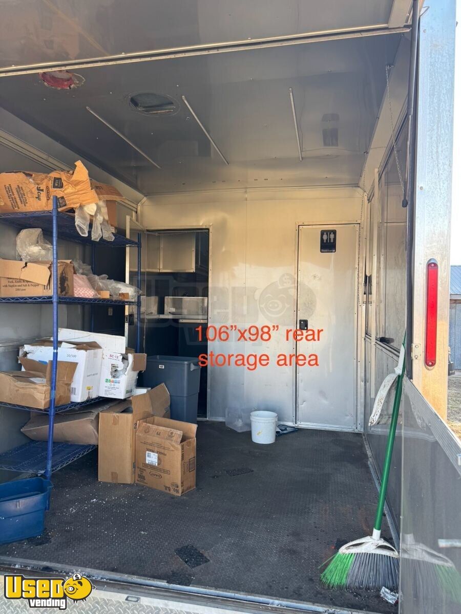 This fully equipped kitchen trailer with a bathroom offers the ideal setup for mobile food service. Outfitted with quality appliances and a private restroom, it’s designed for seamless workflow and convenience. Find out how you can take this home by calling us now!