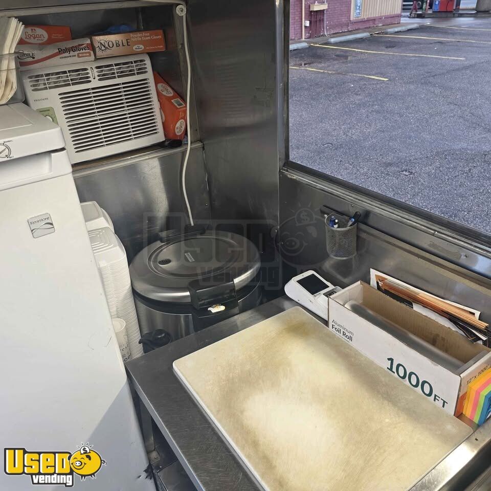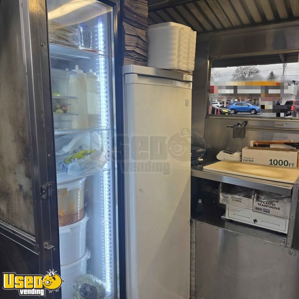 This food trailer offers a mobile cooking setup within a compact frame. It features a durable construction that ensures lasting use. Perfect for launching or expanding a mobile food business. Interested? Call us now!