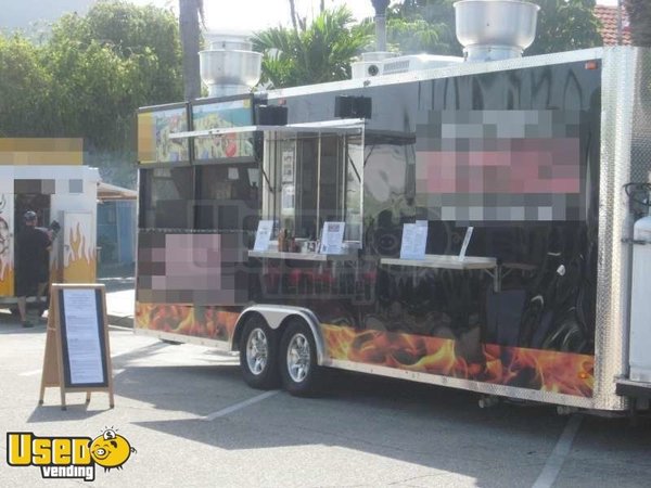 This is a high-end food concession trailer that is actually a restaurant on wheels. It is 33.5' long, with a full kitchen that inlcudes 4 charcoal/wood grills and lots more. Use for selling a variety of items, such as hot sandwiches, subs, and BBQ foods- it can handle just about any menu you like. It's in very good condition, used for only 13 months by original owner.