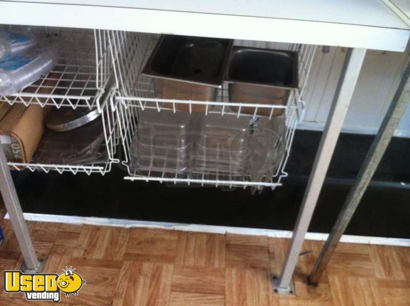 This Wells Cargo concession trailer was used for selling hot dogs, brats and Italian sausage; nachos and pretzels with cheese; fresh baked cookies, chili w/cheese; Frito pies, chili loaded baked potatoes, and used table steamer for onions and peppers for brats and dogs. Very good condition- see details for features & equipment.