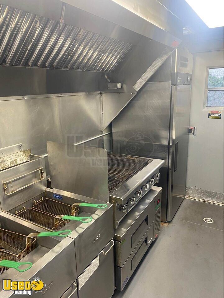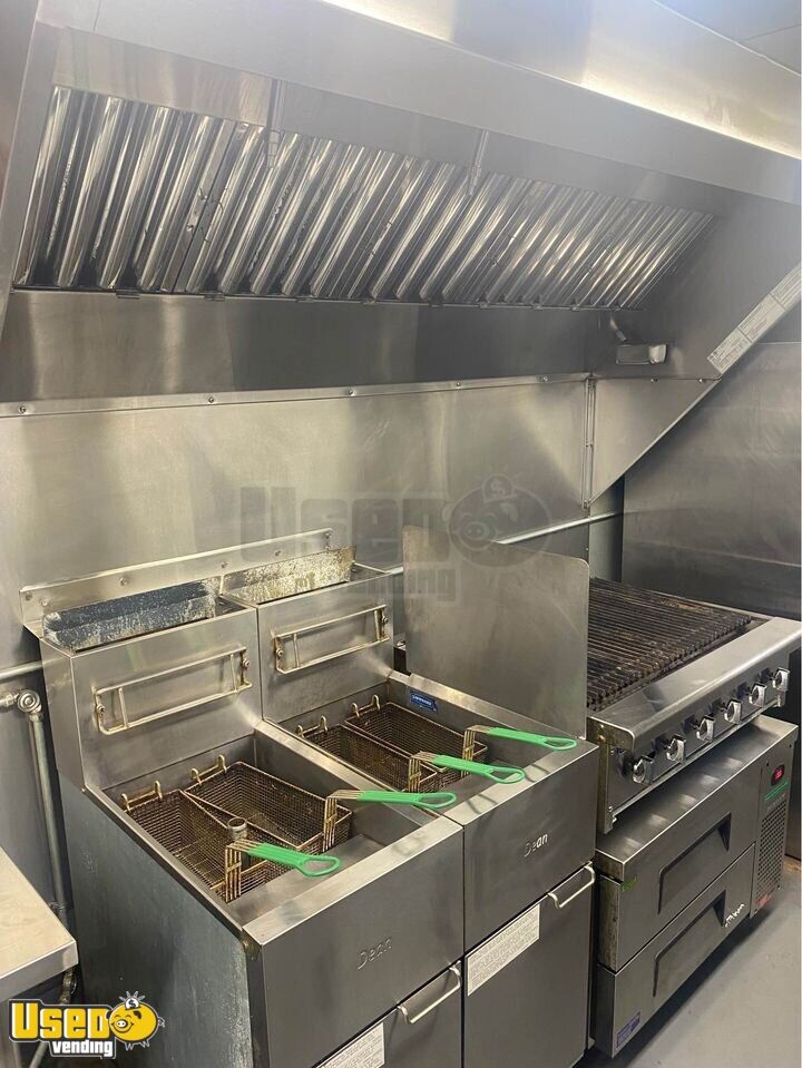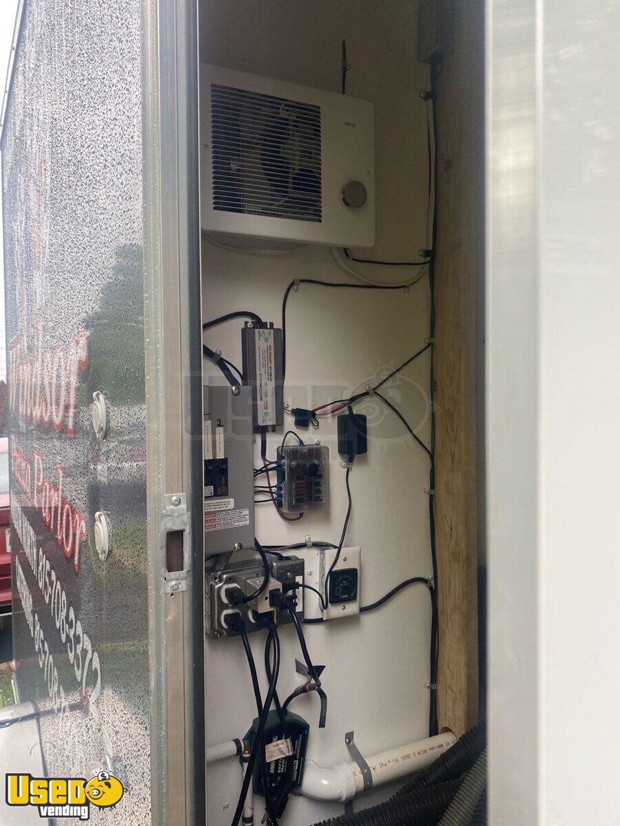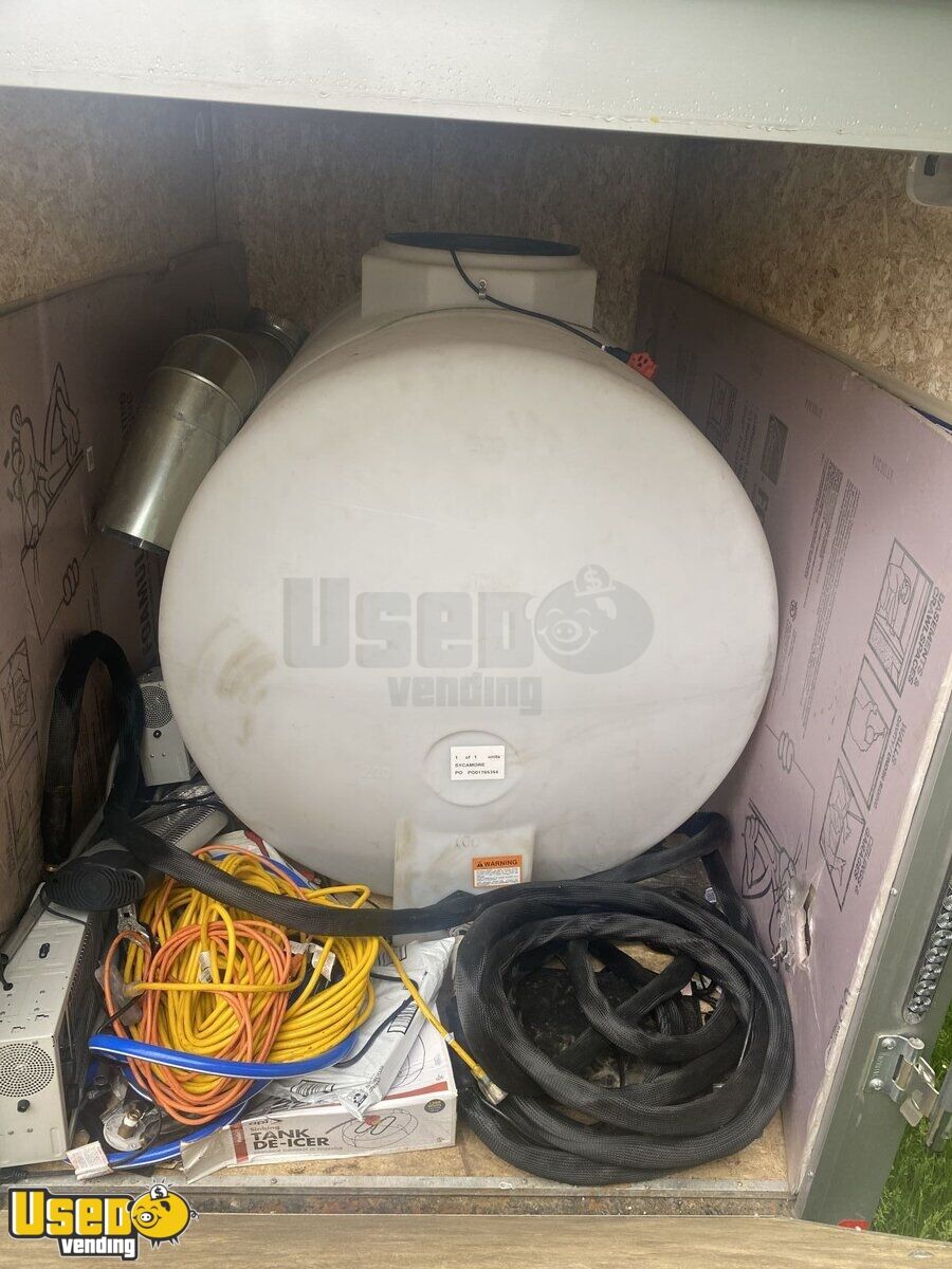 Trailer converted to be able to hook to bulk propane but can easily put 100LBS tanks back on trailer for new owner. Ran a bulk water system but can convert back to regular water system easily for new owner. Plenty of shelving for storage. New Ansul hood, fully tested and functional.