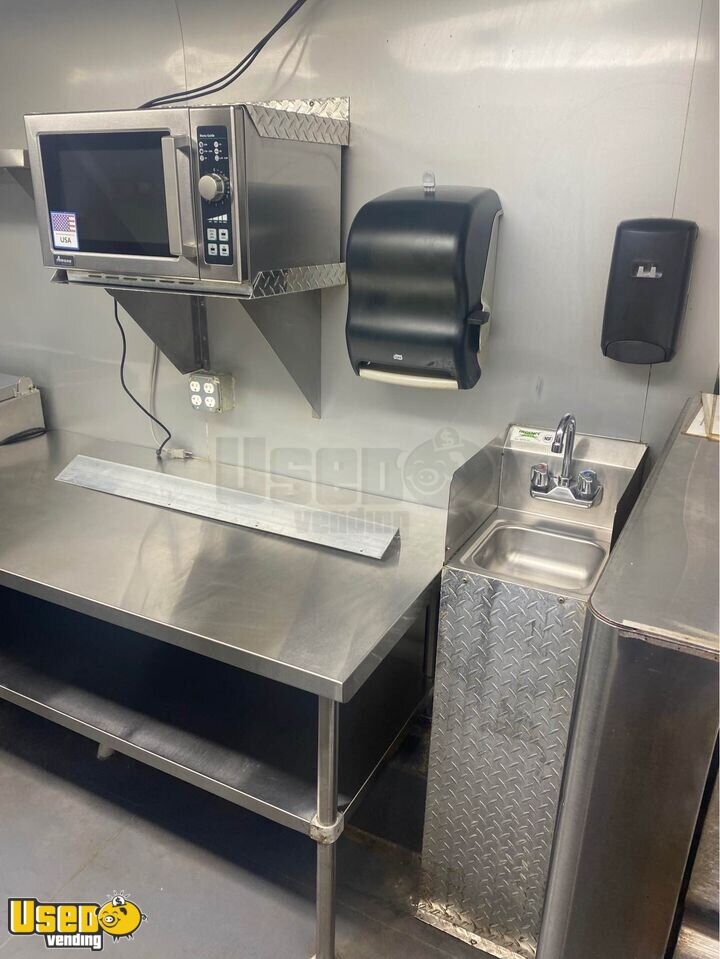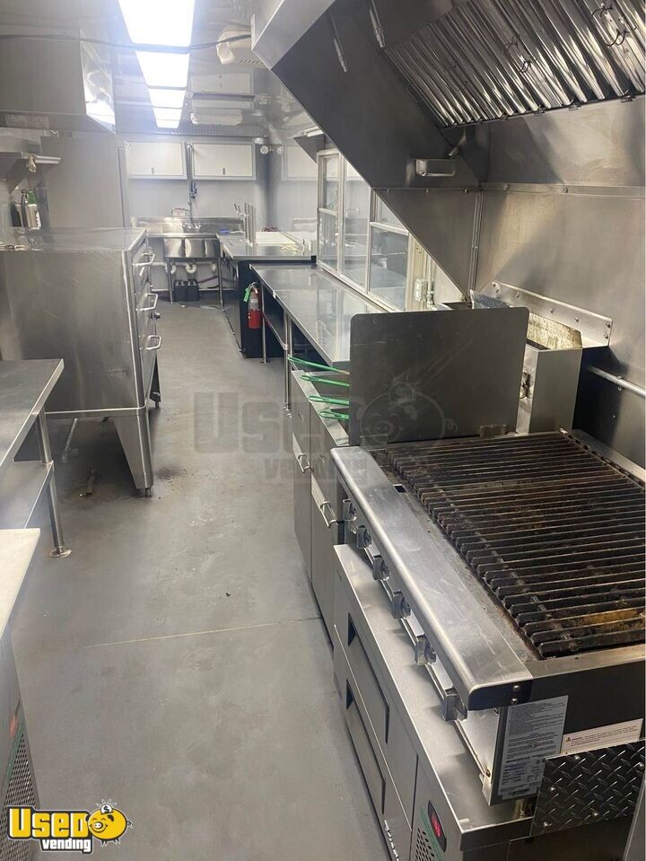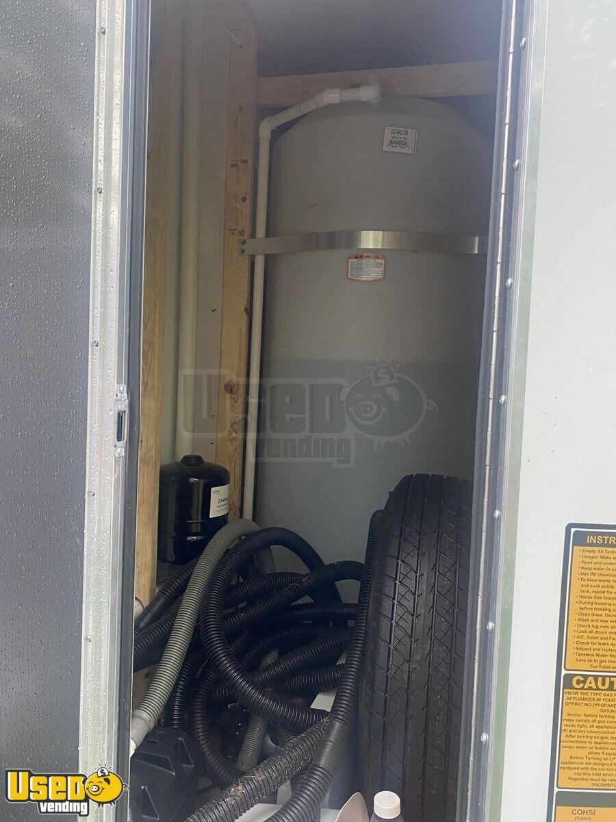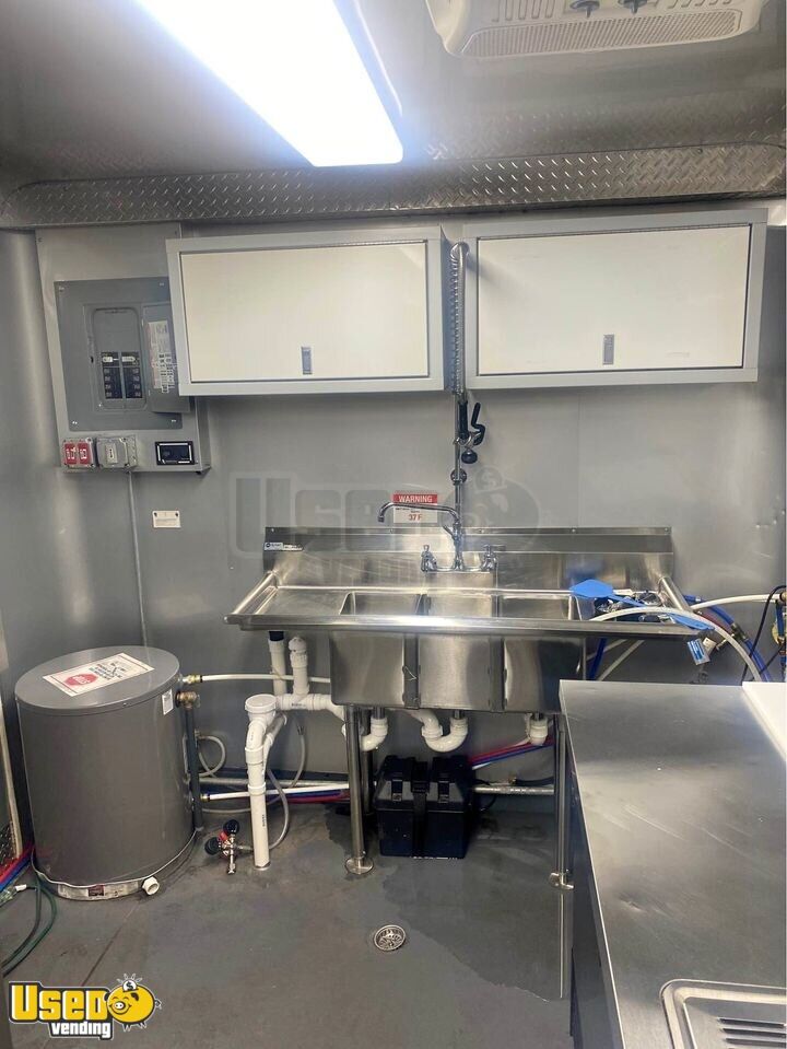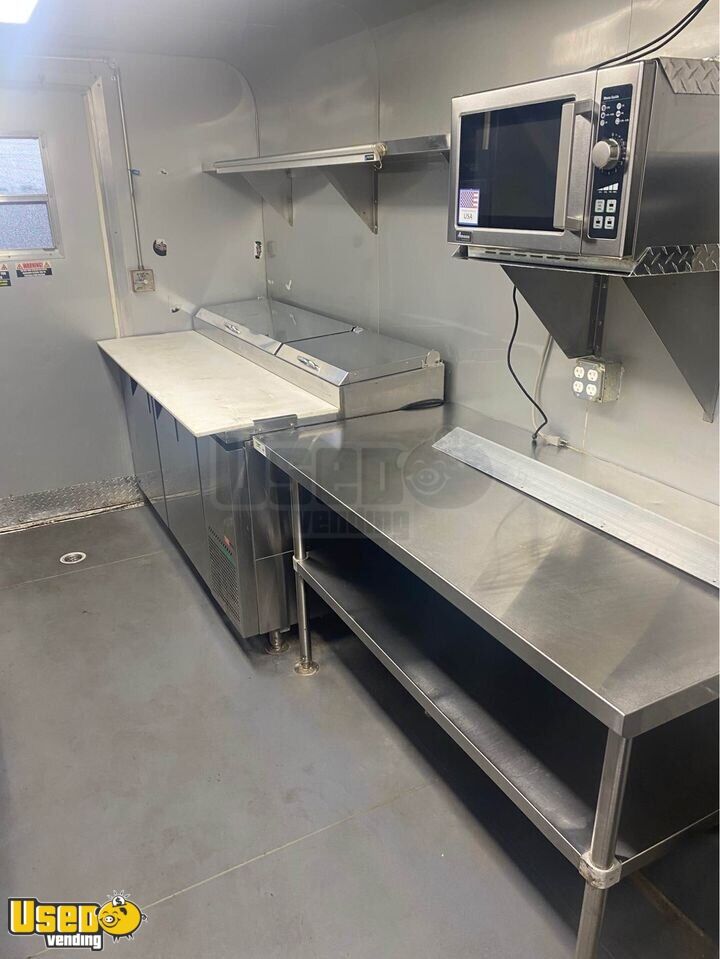 Trailer converted to be able to hook to bulk propane but can easily put 100LBS tanks back on trailer for new owner. Ran a bulk water system but can convert back to regular water system easily for new owner. Plenty of shelving for storage. New Ansul hood, fully tested and functional.