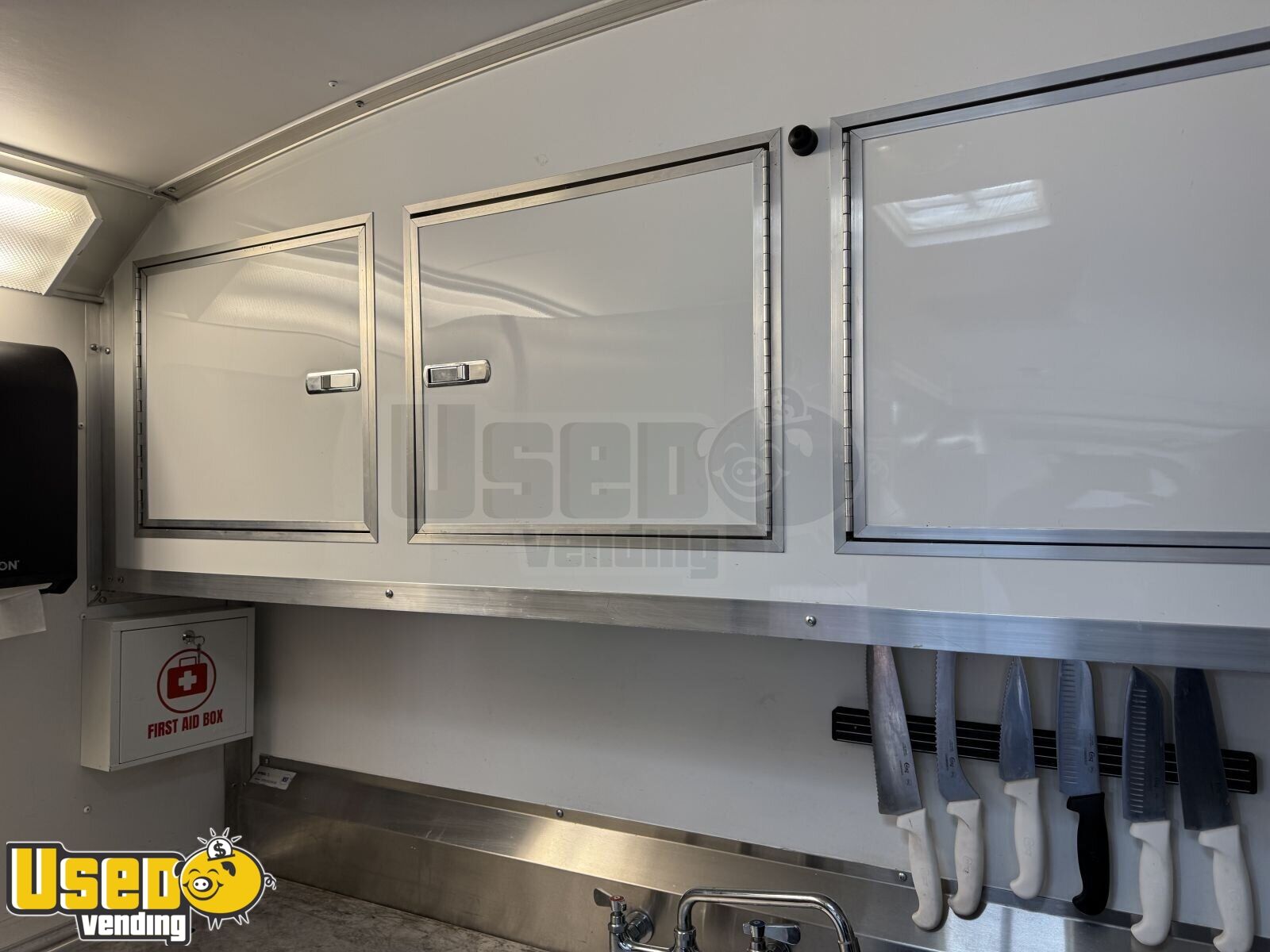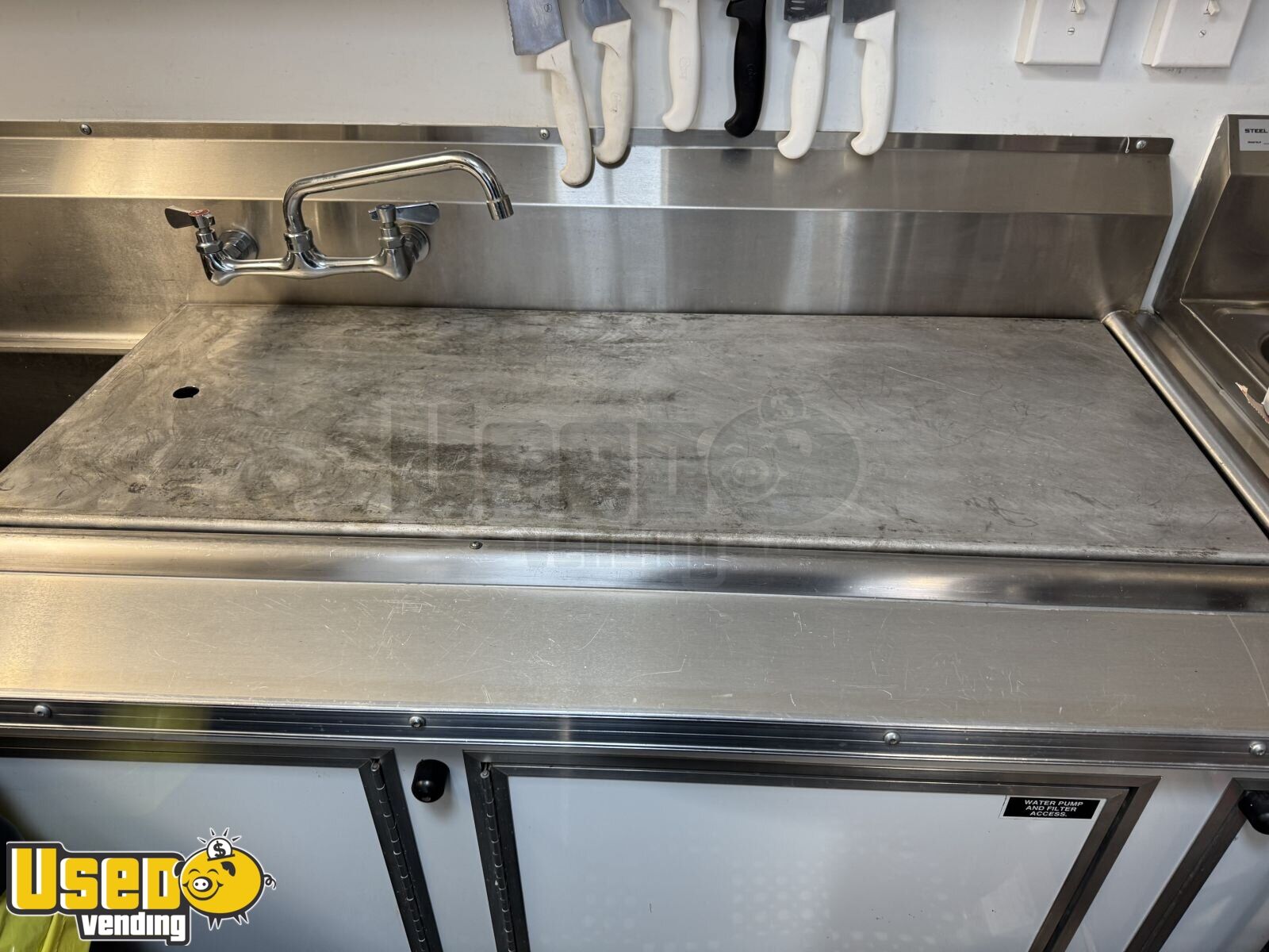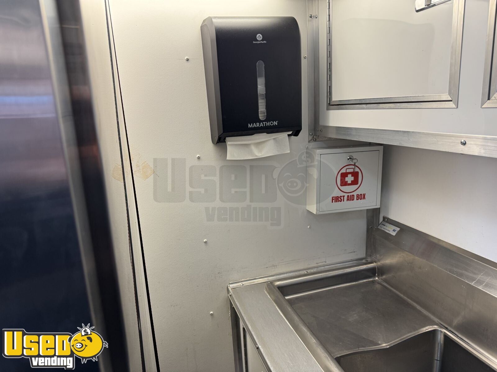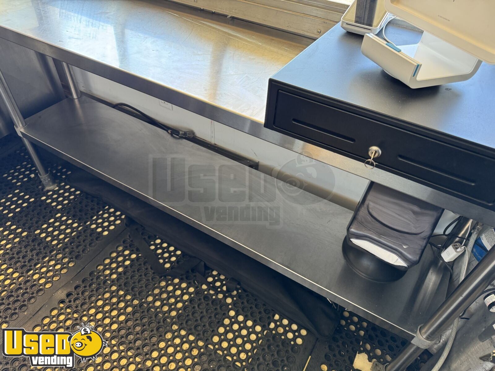 This unit features pro-fire suppression and has a countertop space for your additional needs. In the photos the black trailer is what it looks like without the wrap.