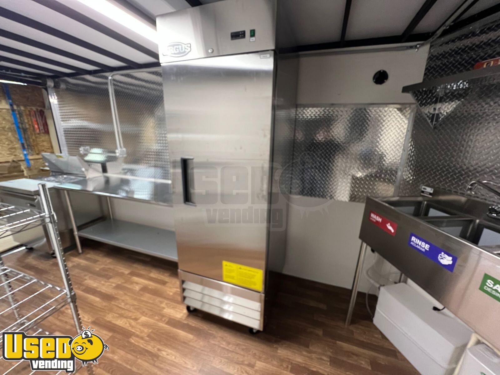 This NEW kitchen trailer delivers a functional setup ideal for efficient mobile cooking. Built with durable aluminum construction, it comes fully outfitted and ready for commercial use, featuring both a large upright freezer and a convenient prep station. Interested? Call us now!