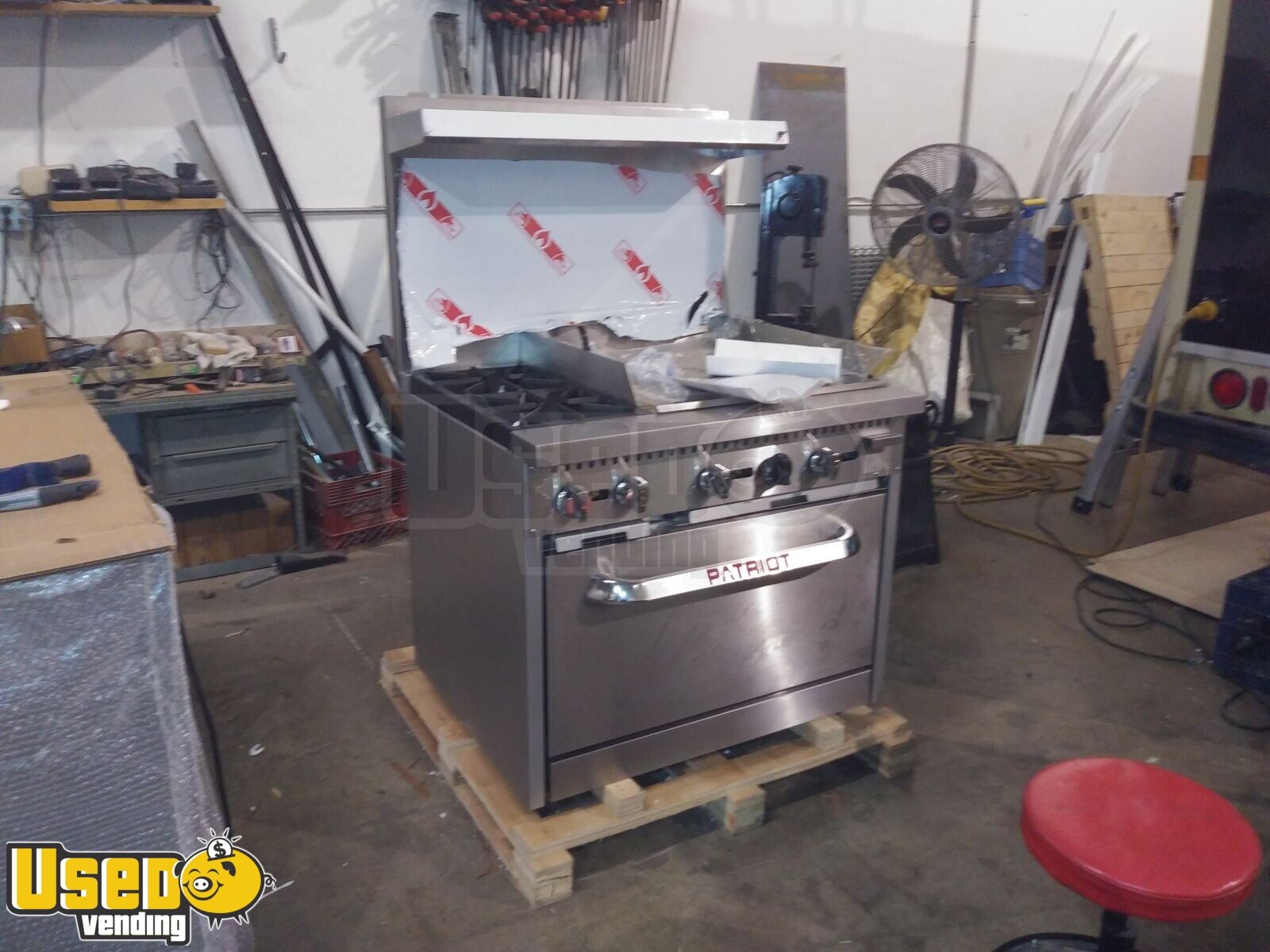 - Oven, 24" flatgrill, chargrill plate, and twin fryers