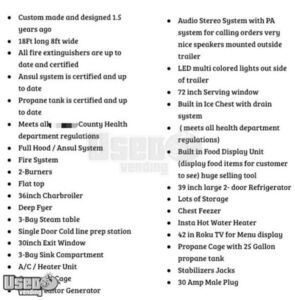 This 2024 kitchen food trailer is a turnkey mobile unit designed for efficiency and customer appeal. Lightly used for one year, it is fully equipped with professional-grade appliances, a PA system, and digital features that make operations smooth and engaging. Call today to secure this feature-rich trailer!