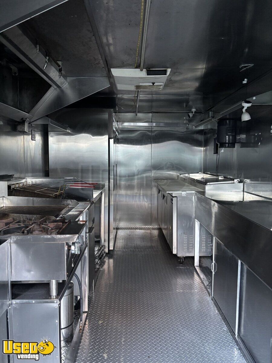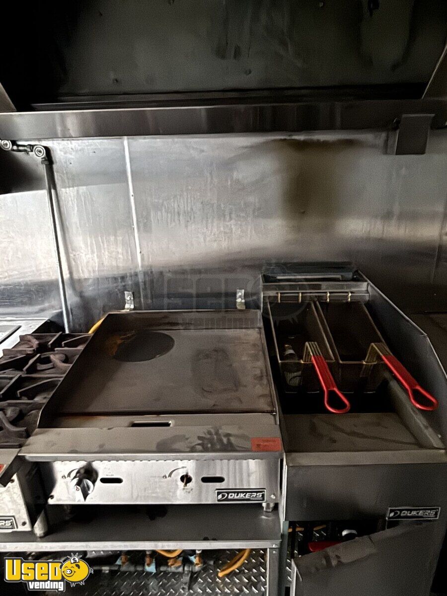 • Flat-top grill, dual fryers, stovetop, and prep cooler
