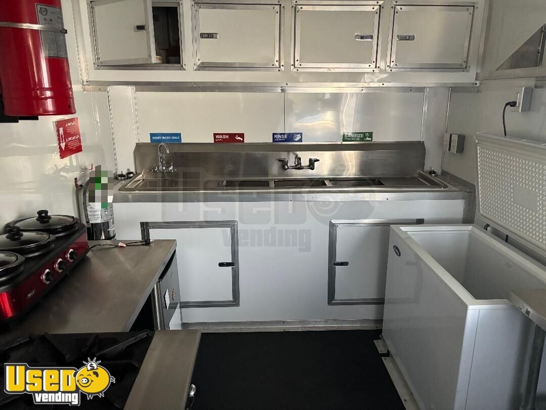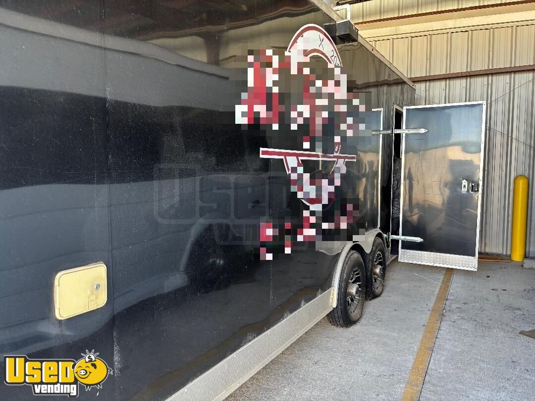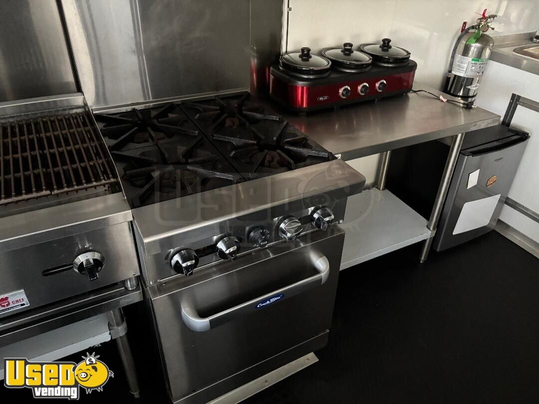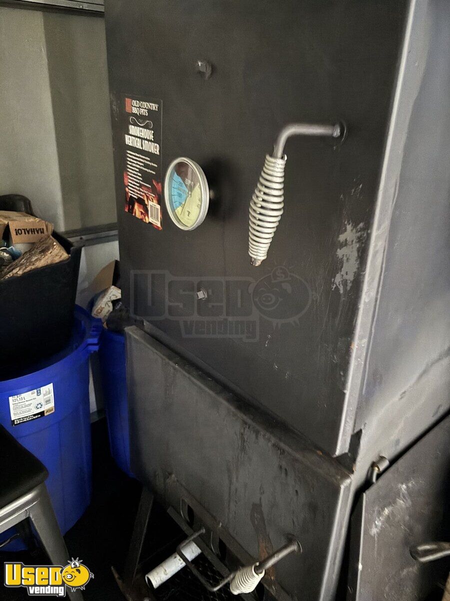This 8’ x 22’ 2020 kitchen food trailer is a ready-to-roll mobile kitchen built for convenience, versatility, and performance. Lightly used with minimal wear, it includes a custom-built rear porch with a BBQ smoker and let-down door—perfect for serving crowd favorites at events, festivals, or catering gigs.