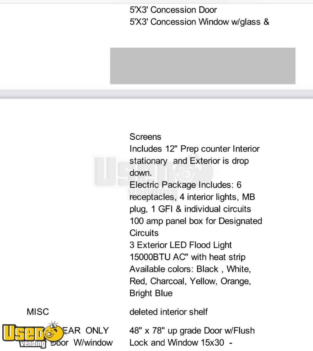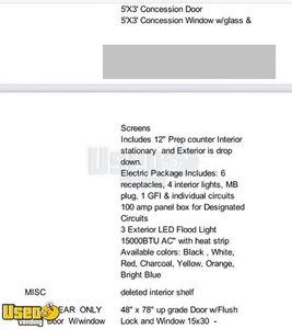 - Concession Window(s): 1 - 5 ft x 3 ft.