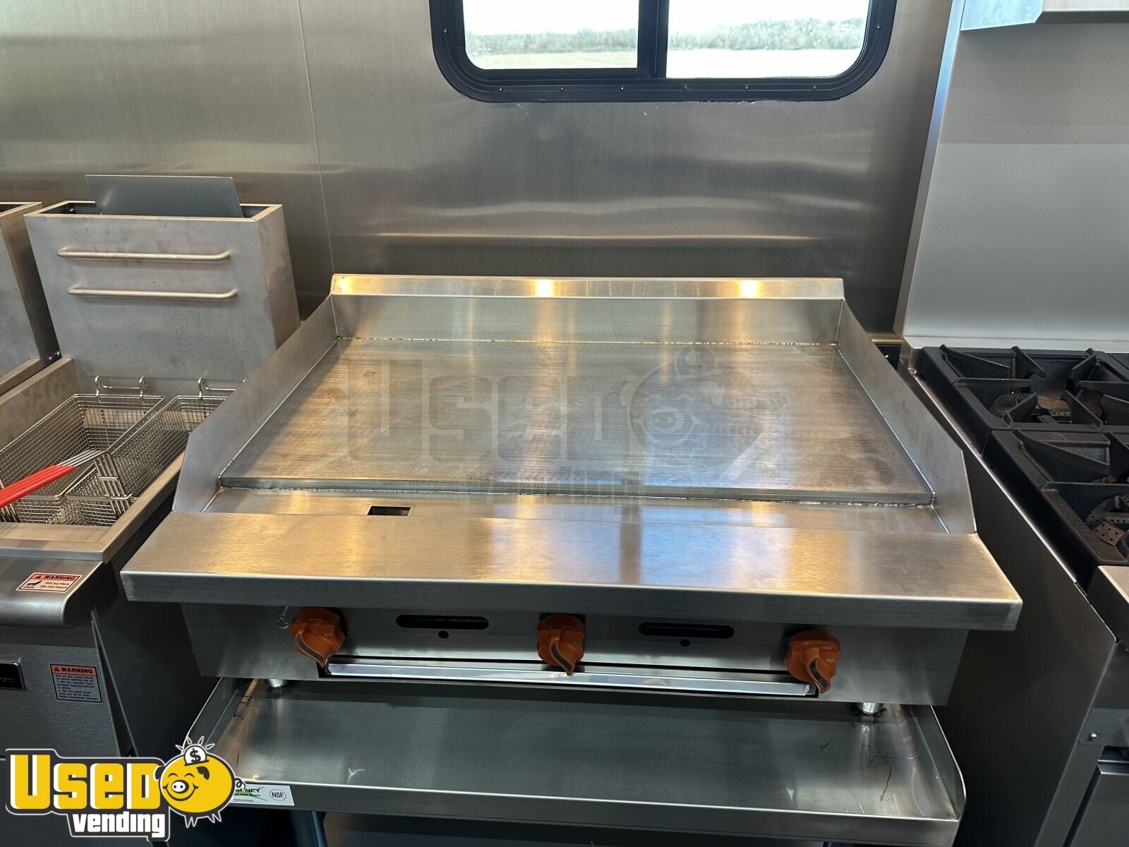 - Dual 40# fryers, 36" griddle, 6-burner range, and large oven