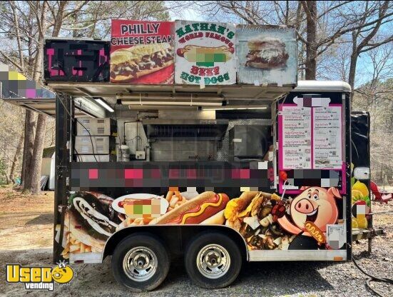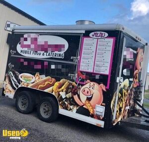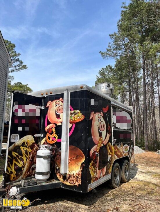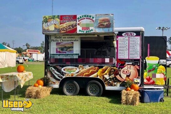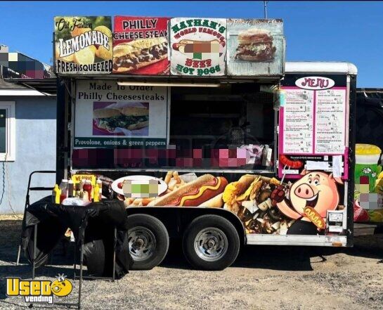 This 8’ x 14’ used Wells Cargo concession trailer offers a practical setup ideal for any mobile food business. Built in 1999 with a kitchen installed in 2017, it features openings on three sides for easy service and customer interaction.