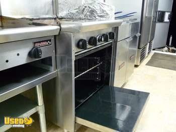32 feet from bumper to tongue and is 11 '10" tall with bell.Has a complete commercial kitchen and 2 serving windows. Trailer has Ansul fire suppression system in Larkin hood; 2 commercial ceiling unit a/c units. It was used to sell a big menu of grilled, fried and made to order foods. Seller is original owner; the trailer was used for 1 year and is like new. It's loaded with features, see details for list of equipment / features.