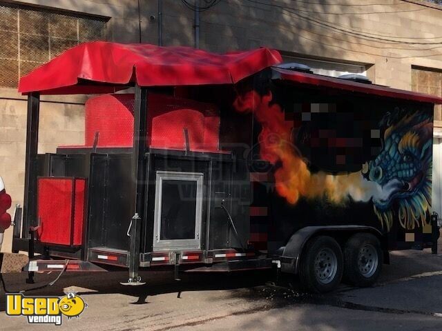 2016 - 7' x 13' Wood Fired Pizza Concession Trailer w/ Porch and Mural Exterior