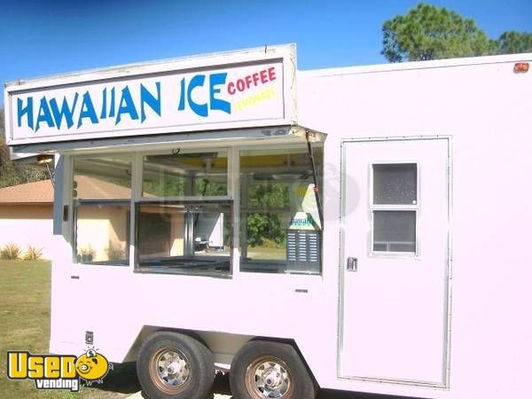 Concession trailer for sale in Florida. 14' x 8.5'. This trailer is equipped for selling Hawaiian ice, cotton candy, fresh lemonade. It has all supplies and equipment to get started. See details for more info.