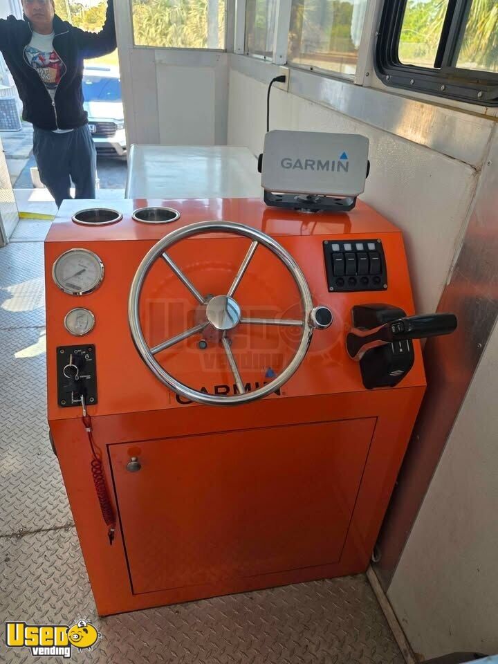 This food boat is built for versatility and convenience, offering smooth operation on the water and a mobile kitchen setup. Designed for entrepreneurs ready to serve anywhere, it includes a trailer for easy transport and a V hull Jon boat with a 20HP Mercury tiller engine. Need to know more? Call us now!