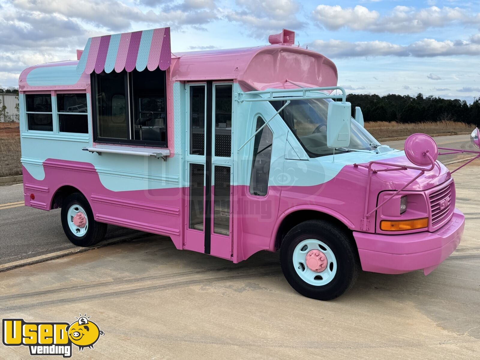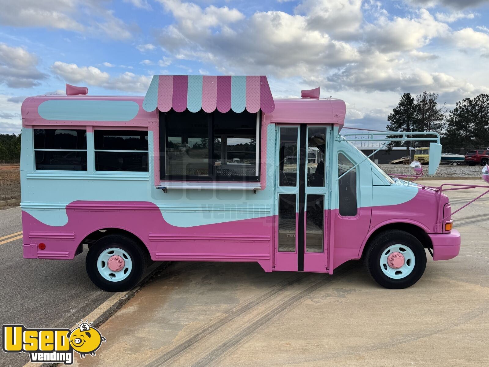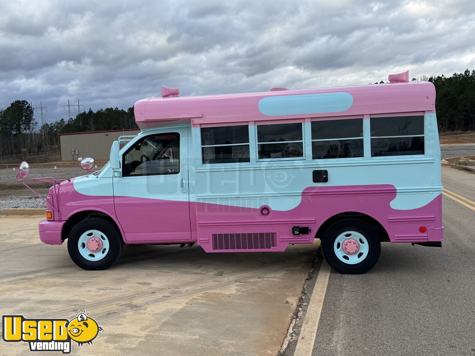 This 2004 GMC Savana Ice Cream Truck with a 2026 build-out offers a fully equipped setup ready to serve frozen treats anywhere. Measuring 18 feet in length, it features dual air conditioning, stainless steel prep areas, a large serving window with an awning, and a fully serviced engine for dependable operation.