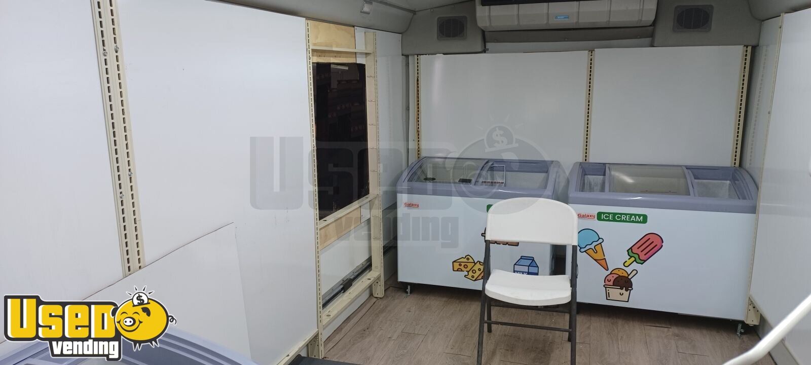 Seller's Note: Can be driven with a normal driver's license, no special licensing is needed. Four windows will open and available. Only 1 window is currently in use, other 3 will require minor interior modifications to use, like moving shelf units, moving fridge/freezer, as unit is insulated with interior walls, opening will need to be made to interior wall to access the other 3 windows. It will come with all the shelves, and the windows close and lock from inside.